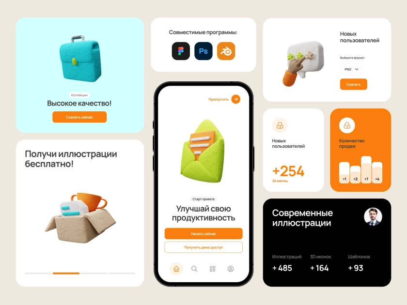 - 30 премиум 3D-иконок