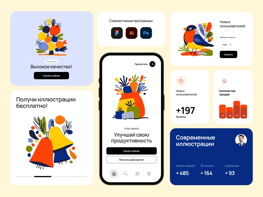 - Совместимо с Figma, Adobe Illustrator, Photoshop
