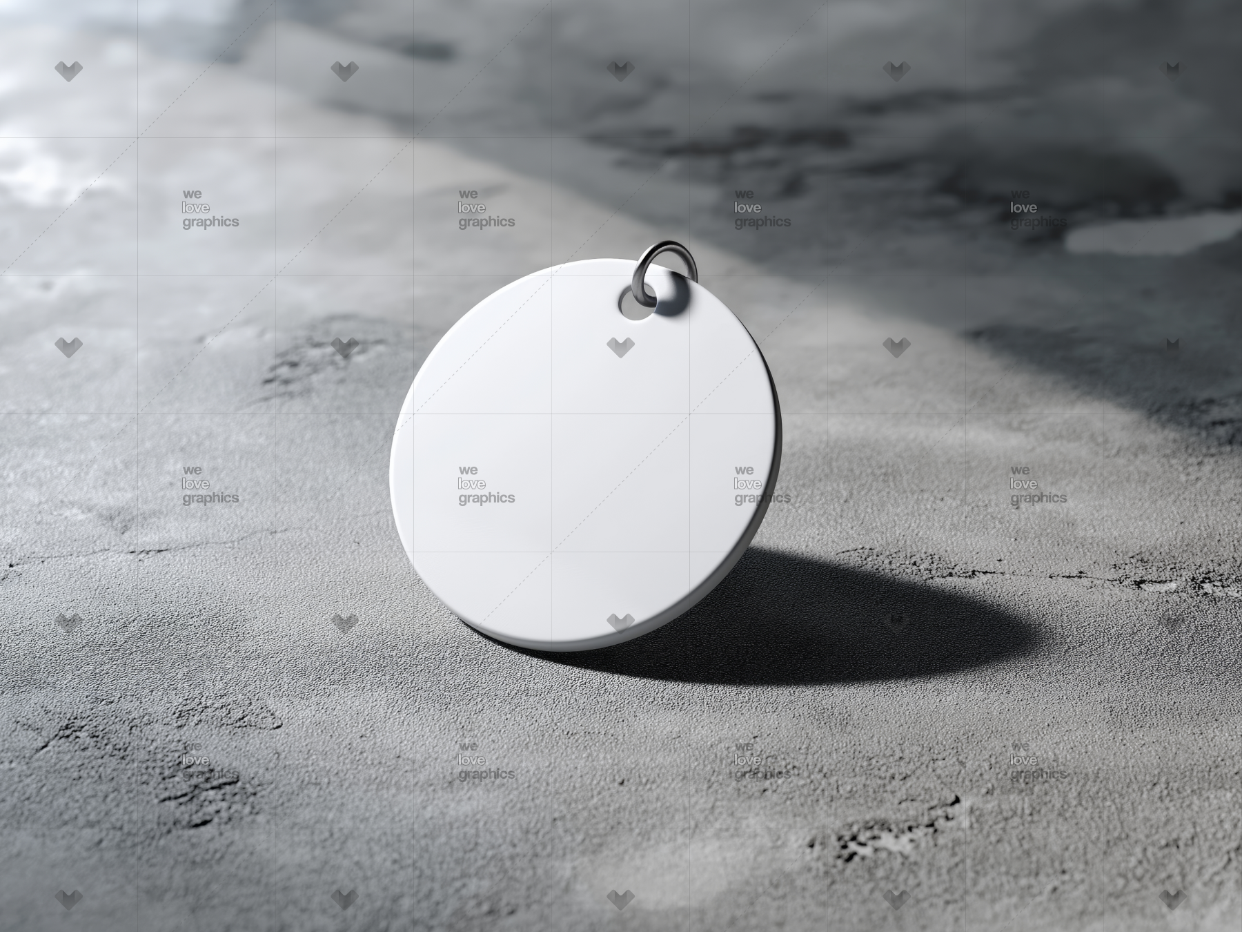 Яркий PSD мокап для круглой бирки с кольцом на бетонной поверхности